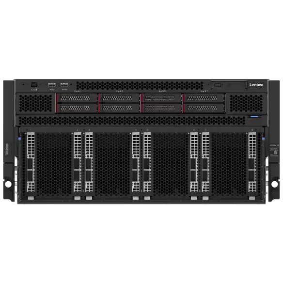 ThinkSystem SR680a V3 AI Server | Обучение ИИ-моделей, большие языковые модели (LLM), симуляции, рендеринг, GPU-нагрузки. | 2CPU | 5th Gen Intel® Xeon® Scalable | 32x TruDDR5 RDIMM slots at 5600MHz | Up to 16x 2.5″ NVMe | Up to 10x PCIe Gen5 x16 adapters (8 front, 2 rear) | 8x NVIDIA SXM H100/H200/B200 |